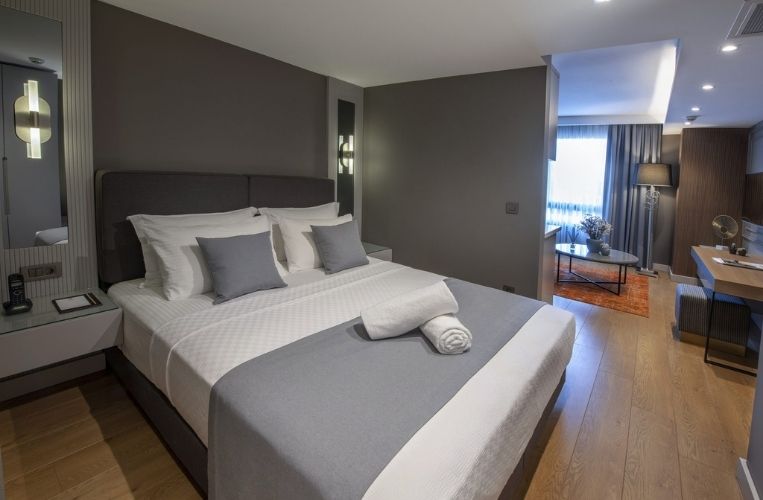 Our Junior Suites, have high-quality bedding in “King-size” format, a living room with sofa, kitchenette with ware, private bathroom equipped with a shower, a desk and an efficient wifi access. A haven of peace, in the heart of İstanbul, to enjoy a stay like at home.